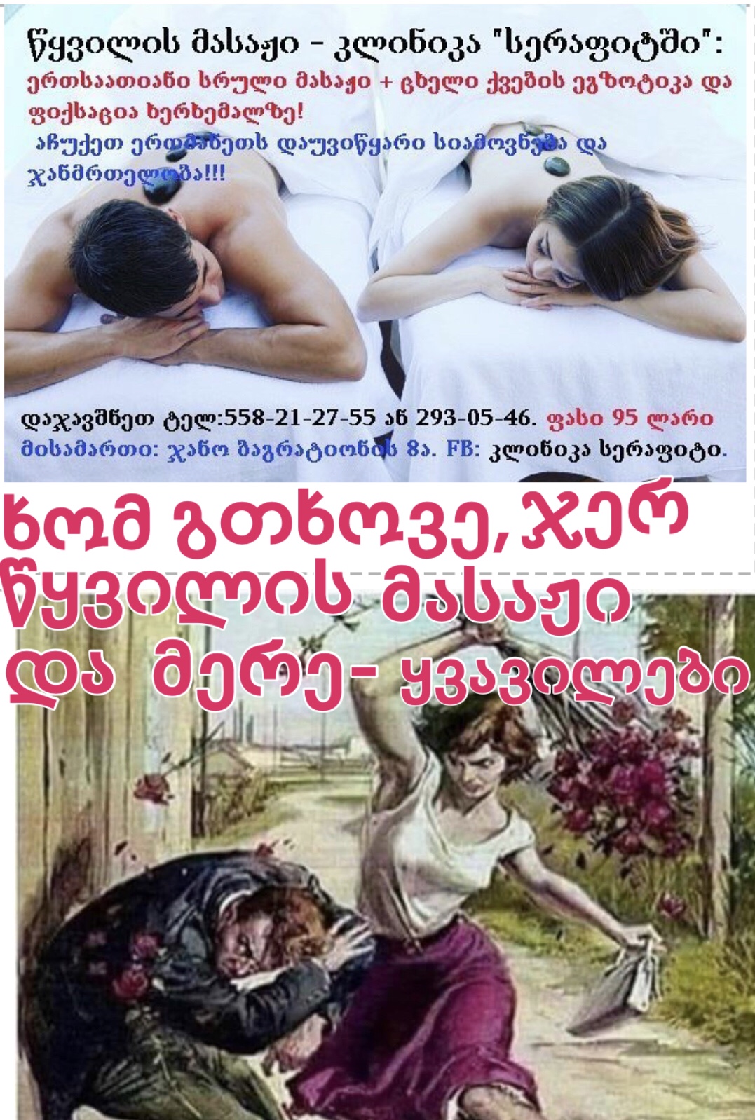 🌹👩⚖️ აქცია კლინიკა სერაფიტიში: სახის მასაჟის 5 პროცედურა მხოლოდ 100 ლარად! + ბონუსი: სპეციალურად თქვენთვის შერჩეული სახის კანის მკვებავი გელი მარინა ჩხობაძისგან!